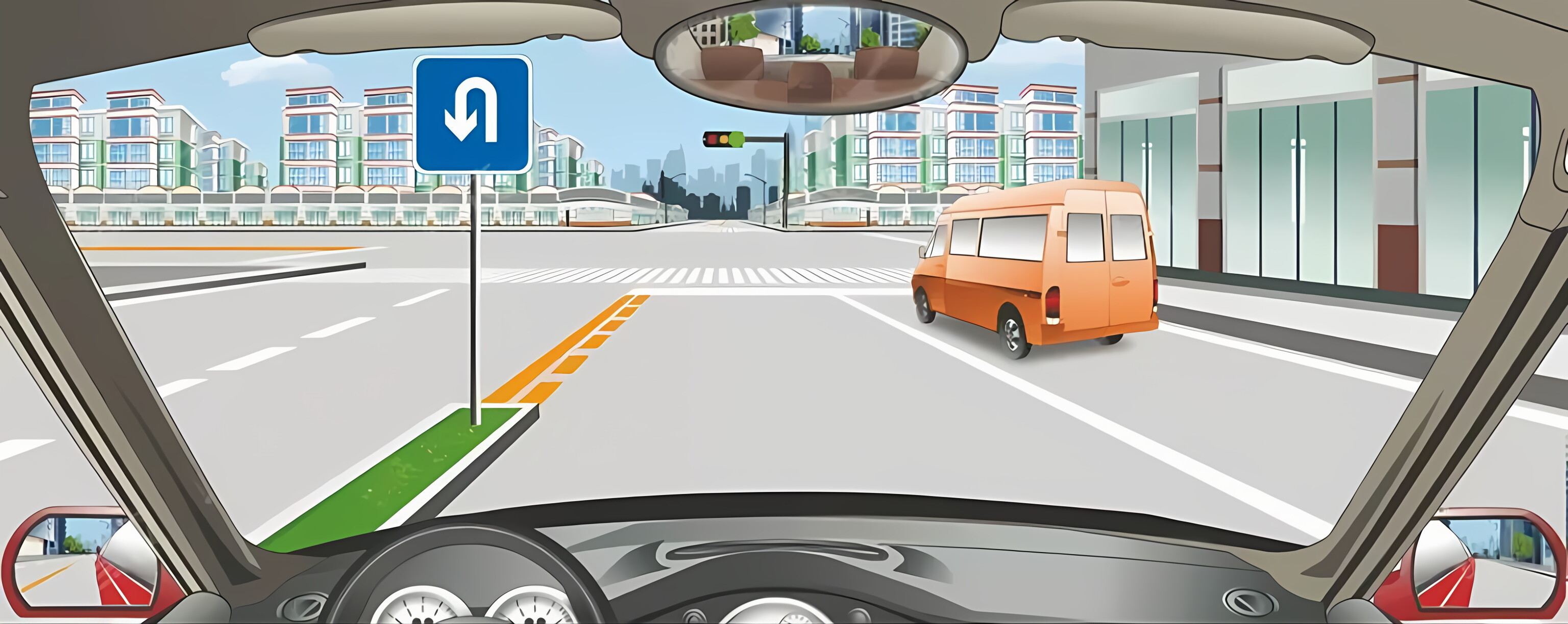 图中左侧是允许掉头标志,表示此处允许机动车掉头。