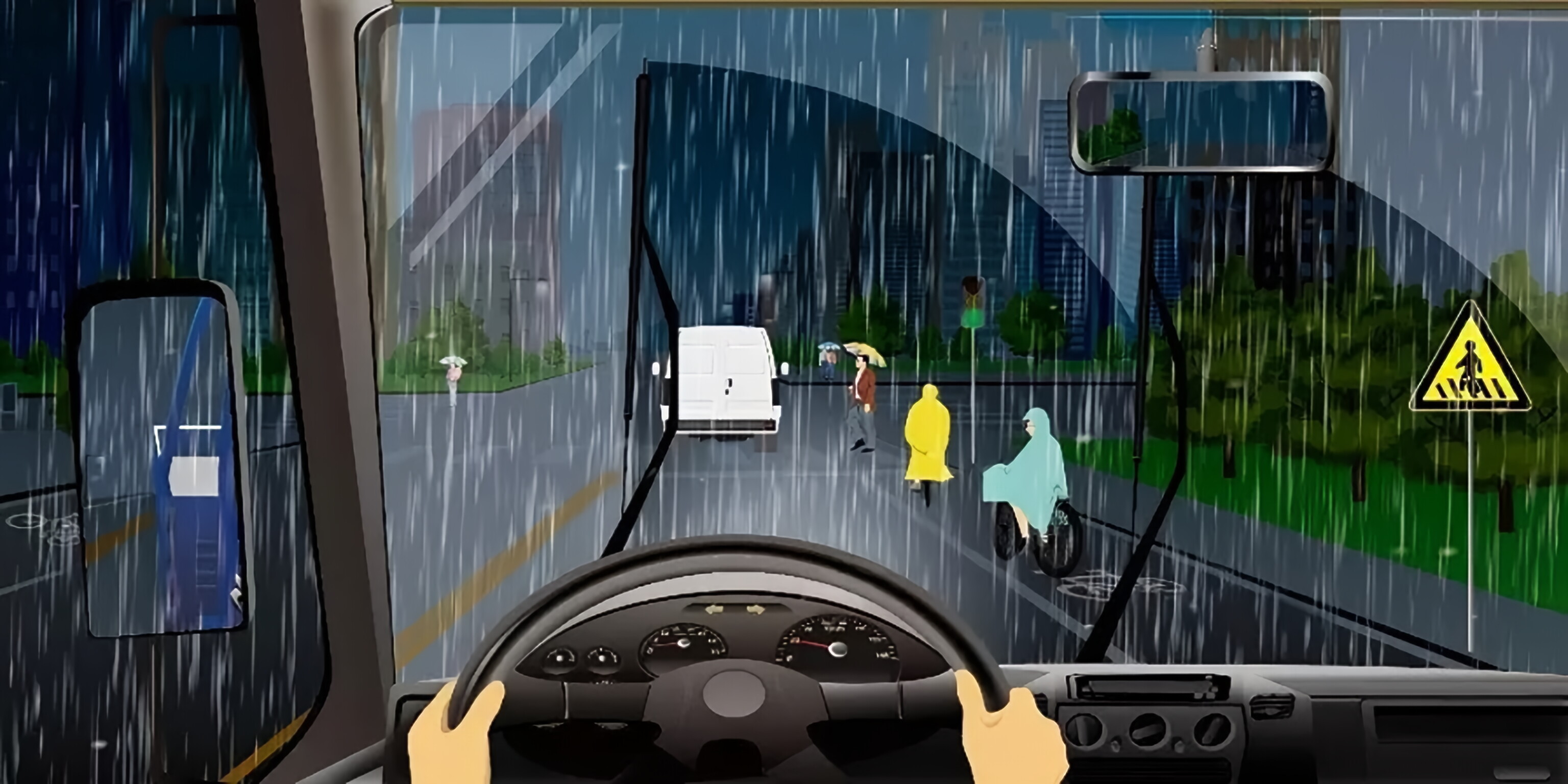 如图所示,驾驶机动车在雨天行驶,驾驶人应当注意的是什么?