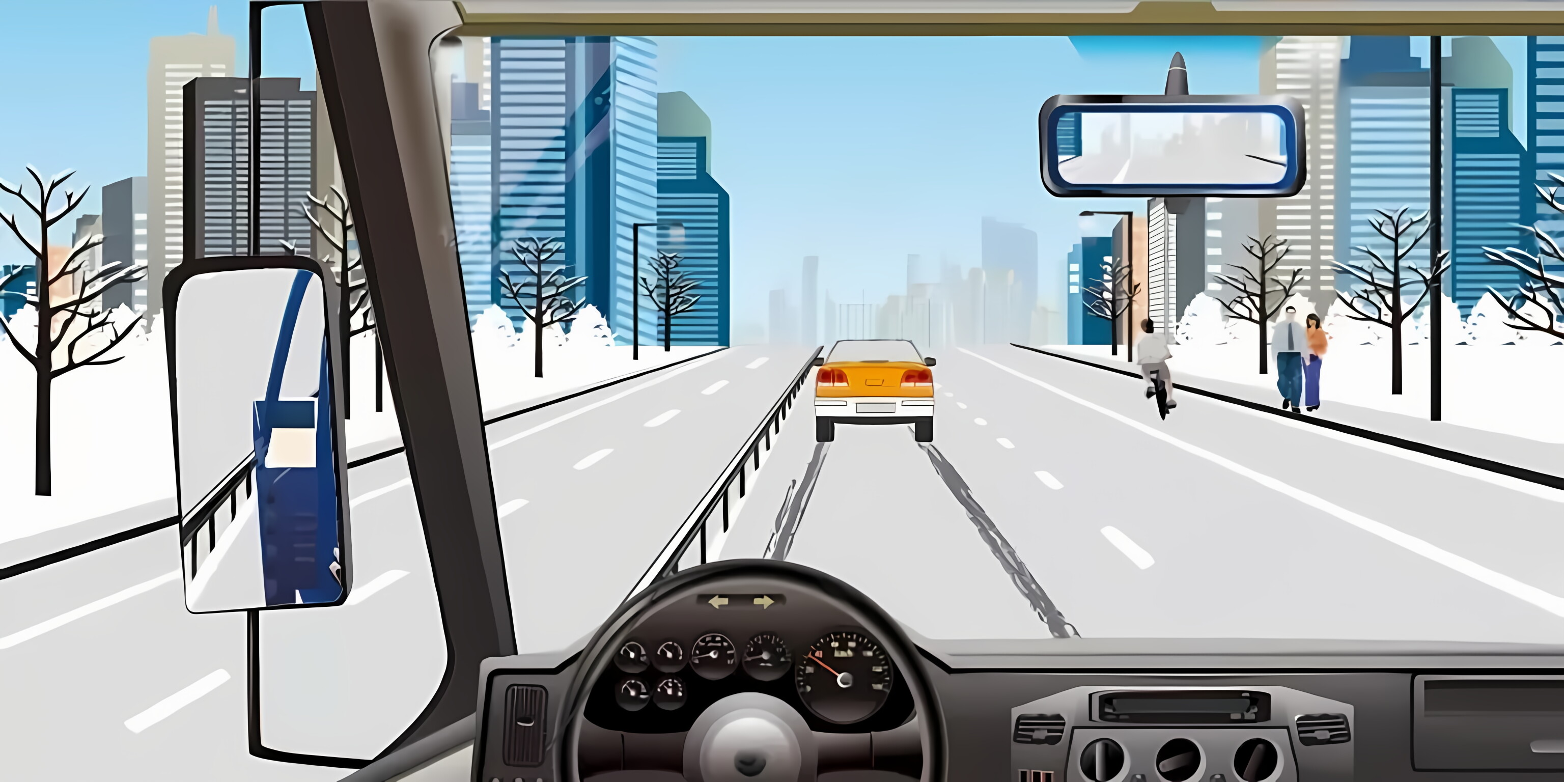 如图所示,在这种条件的道路上怎样行驶才安全?