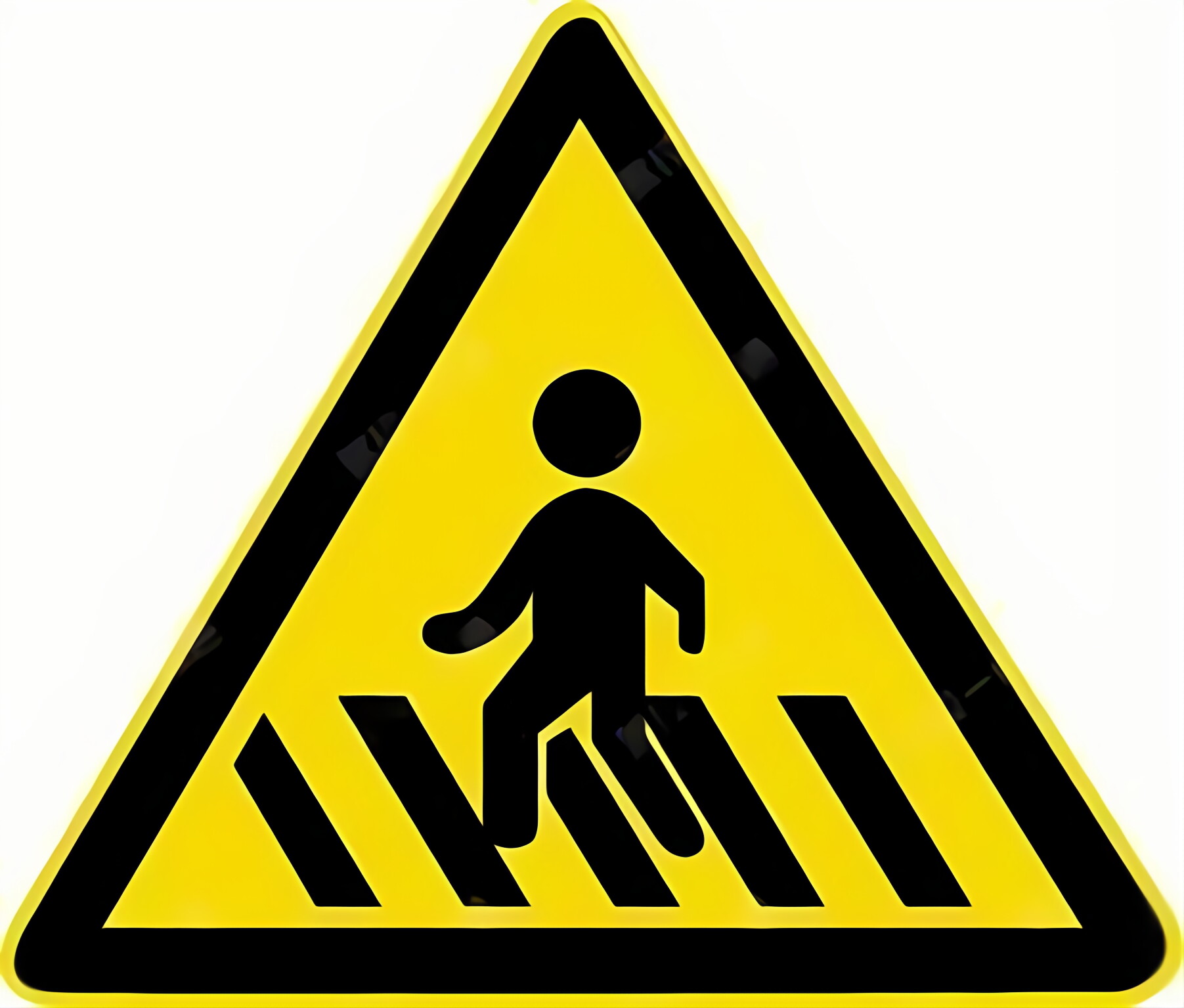 注意行人标志。用以警告车辆驾驶人减速慢行,注意行人。设在行人密集,或不易被驾驶员发现的人行横道线以前的适当位置。